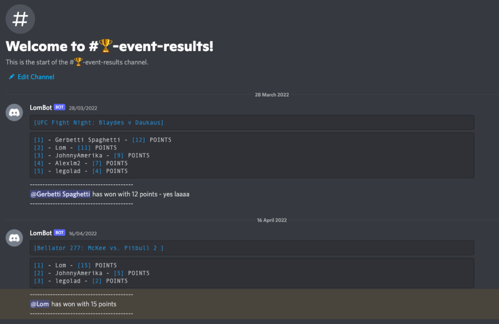 3. Once the event starts, all picks will be locked in & it will no longer be an event available tosetpicksfor
